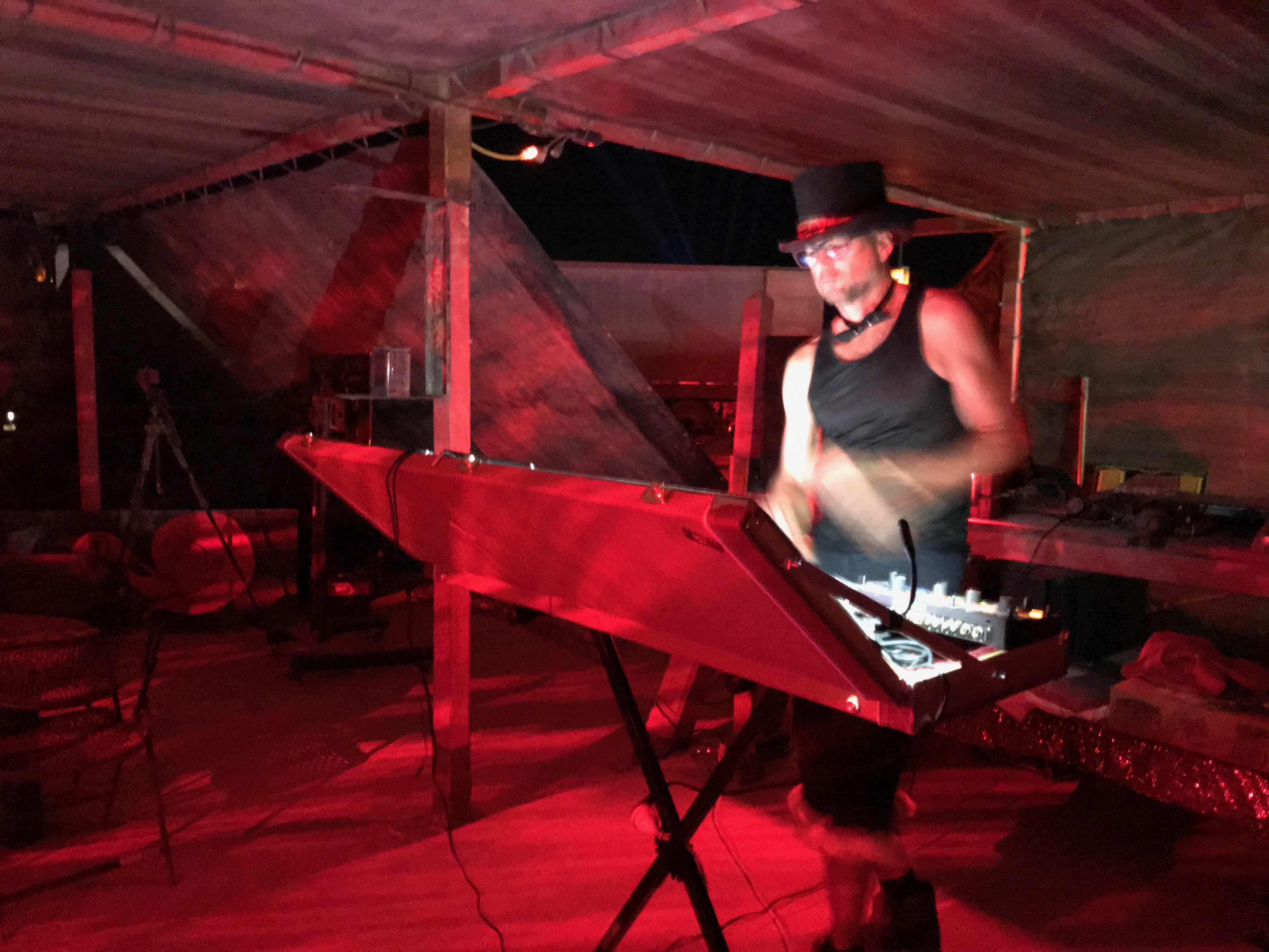 And the easy part? Well, it’s actually not really any great shakes to play at burning man. If you put in the hard yards with spruiking your music gift to the hundreds of theme camps out there, you can get gigs. But still, my favourite 2 gigs are playing at our Camp Gecko’s ABCD Party and the solo gig I do out in the desert at sunset on the last Friday!
